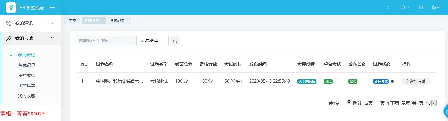 36. 考试记录:不管是否提交的试卷都会记录在此列,能看到自己答题是输入的答案
