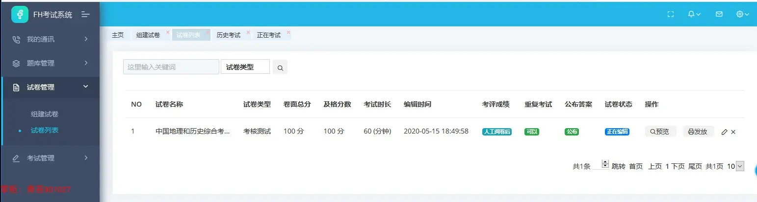 30. 试卷列表:维护试卷,预览试卷,操作发放试卷
