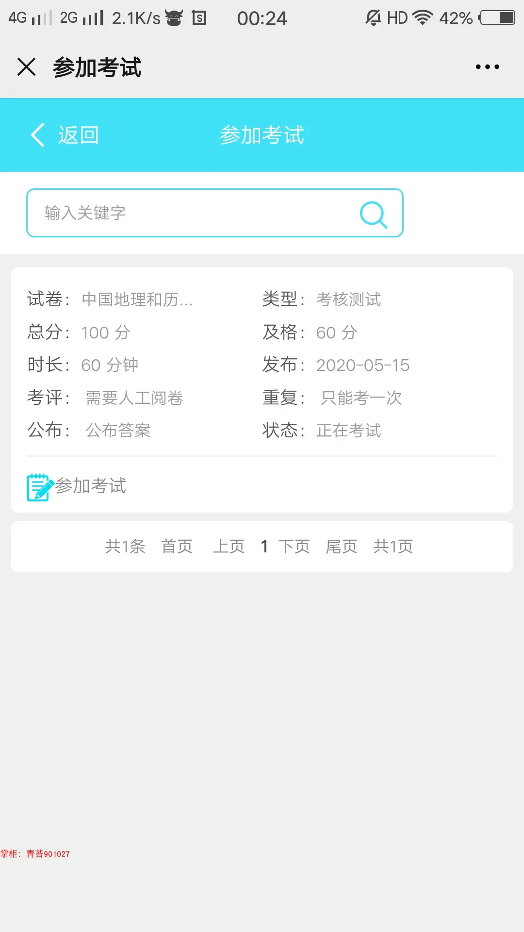 35. 参加考试:根据当前个人条件,可以看到符合的试卷进行考试,试卷计时,判断未答的试题,答完才能提交
