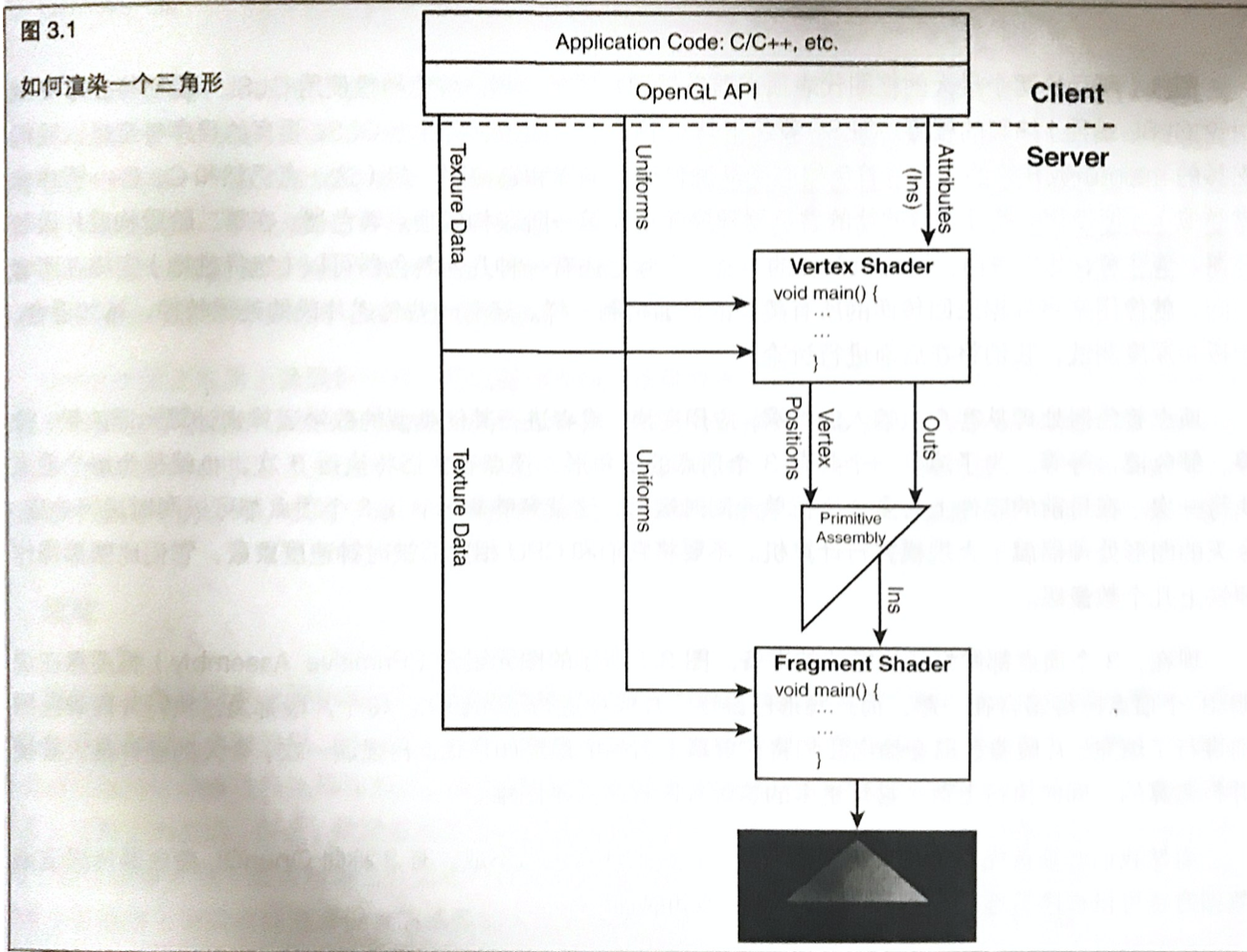 OpenGL渲染一个三角形的渲染管线的简化版本如上图所示。