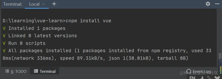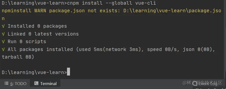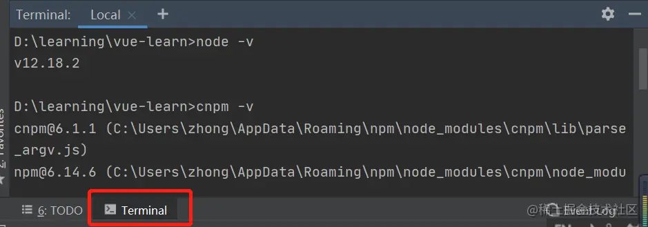 [Vue.js]——WebStorm或Idea新建项目 newzhong 2020-07-08 1,070 阅读1分钟 使用或idea新建一个空的项目 基础配置 带Terminal编辑器(Alt+F12),检查node.js和npm是否已经安装完成 3. 安装vue cnpm install vue 检查是否安装成功 vue -V 安装全局vue-cli cnpm install --global vue-cli 创建webpack模板项目 vue init webpack vue-learn 这里需要进行一些配置,默认回车即可 输入cnpm run dev