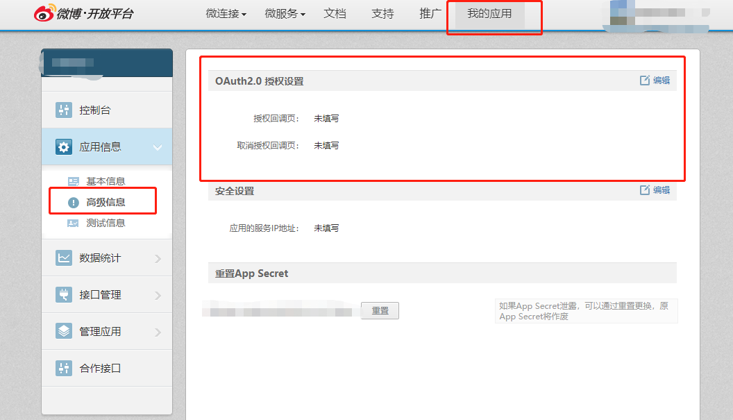通过新浪微博开放平台去注册一个应用,拿到App Key,同时设置好授权回调地址。