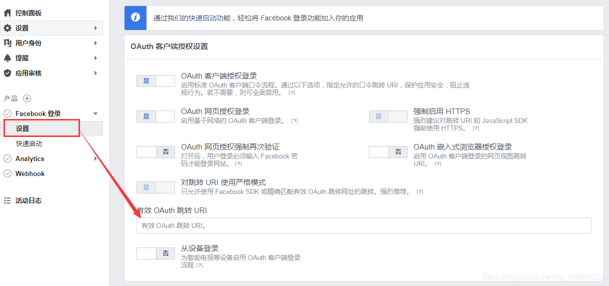 通过facebook开发者平台去注册一个应用,拿到App Key,同时设置好授权回调地址(仅支持https)。
