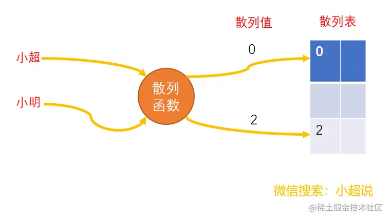散列函数,顾名思义,它是一个函数。我们把它定义成 hash(key) ,其中 key 表示元素的键值,则 hash(key) 的值表示经过散列函数计算得到的散列值。它的任务就是将键转化为数组的索引。