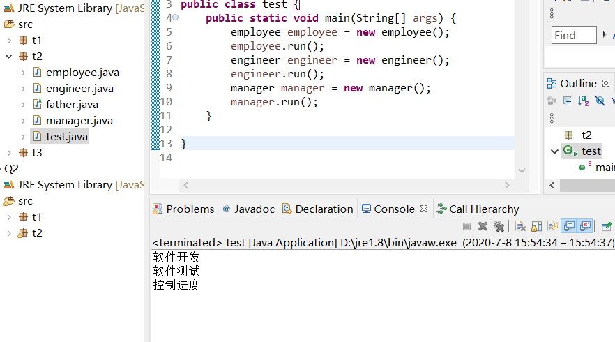 定义子类employee继承父类 继承抽象类必须重写里面的所有方法