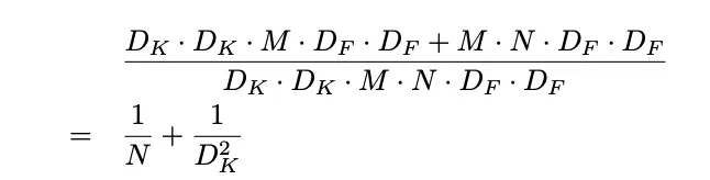 尽管深度卷积更高效,但没有很好地融合多个输入维度,所以需要额外层来对其输出进行线性组合,这里使用pointwise卷积来生成新特征图,即深度可分离卷积,计算量为: