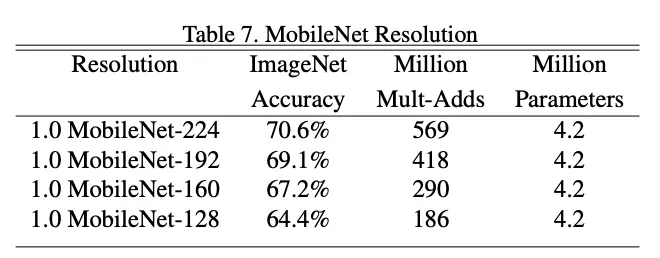 MobileNet还可以通过分辨率缩放因子来缩放模型的大小,结合宽度缩放因子