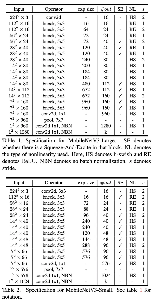 MobileNetV3 Definitions