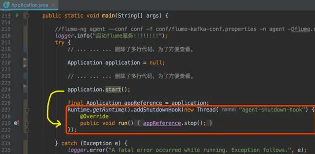 Apache 麾下的用于海量日志收集的 Flume 启动时的部分源码: