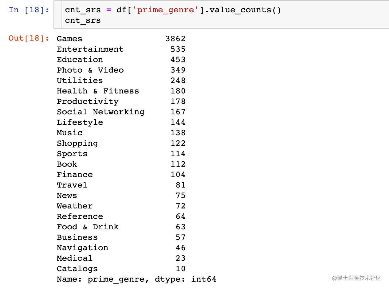 cnt_srs1 = df_free['prime_genre'].value_counts()
