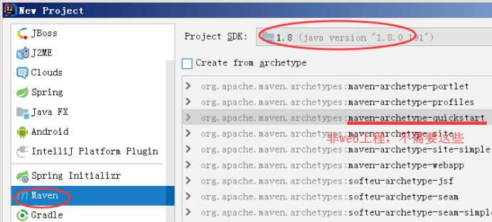 下图有个错误,需要先勾选Create from archetype,才能选中maven-archetype-quickstart。