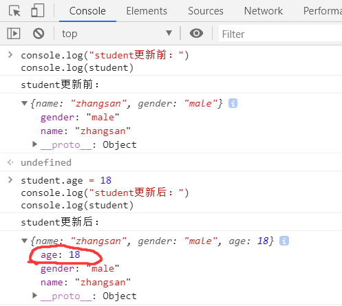 - 如果属性名已经存在在于对象中,那么这个属性的值将被替换。