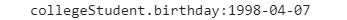 console.log("collegeStudent.birthday:" + collegeStudent.birthday)