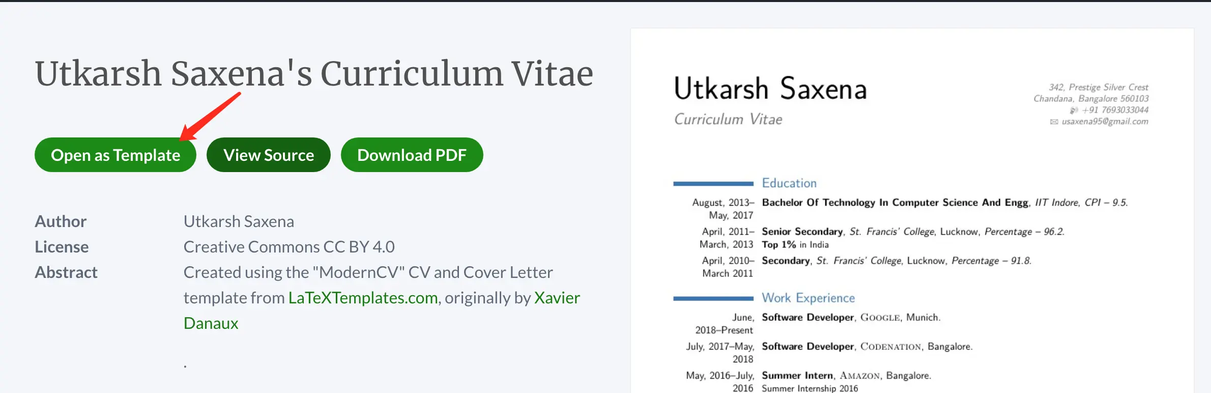 之后就可以发现一些通过Latex语法生成的简历模板