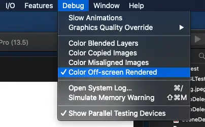 选中模拟器->Debug->Color Off-screen Rendered 效果: 相关代码:UIImageView * view1 = [[UIImageView alloc]initWithFrame:CGRectMake(100, 130, 100, 100)]; view1.layer.cornerRadius = 50; view1.backgroundColor = [UIColor redColor]; [self.view addSubview:view1]; UIImageView * view2 = [[UIImageView alloc]initWithFrame:CGRectMake(100, 240, 100, 100)]; view2.image = [UIImage imageNamed:@"timg.jpeg"]; view2.layer.cornerRadius = 50; view2.clipsToBounds = YES; [self.view addSubview:view2]; UIImageView * view3 = [[UIImageView alloc]initWithFrame:CGRectMake(100, 350, 100, 100)]; view3.image = [UIImage imageNamed:@"timg.jpeg"]; view3.layer.cornerRadius = 50; view3.clipsToBounds = YES; view3.backgroundColor = [UIColor redColor]; [self.view addSubview:view3]; UIImageView * view4 = [[UIImageView alloc]initWithFrame:CGRectMake(100, 460, 100, 100)]; view4.image = [UIImage imageNamed:@"timg.jpeg"]; view4.layer.cornerRadius = 50; view4.backgroundColor = [UIColor redColor]; [self.view addSubview:view4];很多人对于离屏渲染都有个误区就是圆角加clipsToBounds/masksToBounds设置为true就会造成离屏渲染。冲上面的代码就可以推到这种说法,从上图可知只有view3造成了离屏渲染,而view2设置了圆角并且clipsToBounds设置为true,但是view2并没有造成离屏渲染,究竟触发离屏渲染的真正原因是什么呢?