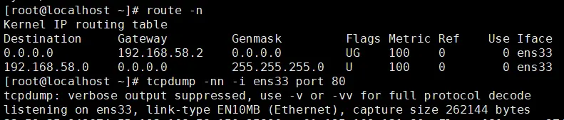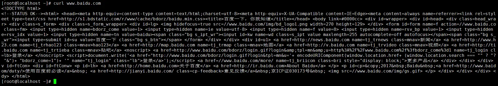 yum install tcpdump 然后我们另起一个连接(该不会有人敲命令是直接在linux上敲的吧)通过curl命令访问百度: