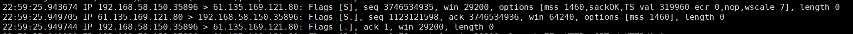 那么TCP建立连接到底是不是三次握手呢?很简单,首先我们先在linux上敲如下的命令来把网络中传输的数据包的包截获下来分析: