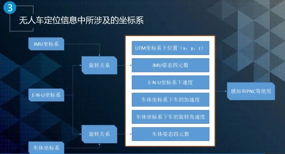 前面我们还说道车体坐标系下加速度和角速度,他们相对于车体,因为车往那个方向的加速度或者角速度,其实车体最有用,也不会把它转化到其他坐标系下。这些东西可以感知和pnc用。