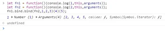 fn1.bind.bind(fn2,1,2,3)(4)(5);可以发现,多个 bind 执行的时候和 call 类似,最后的结果就是最后一个 bind 中的第一个参数(如果是函数的话)执行,并且把这个函数中的 this 改成最后一个 bind 中的第二个参数,只是传参的时候比 call 多传了一个 4 和 5。