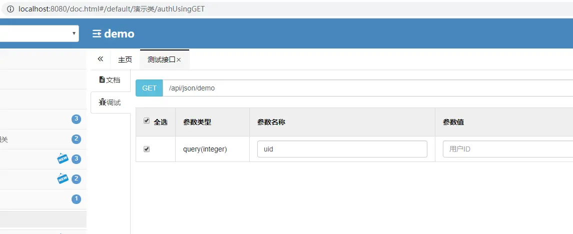localhost:8080/api/json//demo?uid=