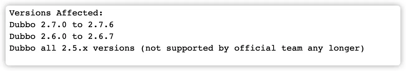 按照文章披露的漏洞影响范围,可以说是当前所有的 Dubbo 的版本都有这个问题。