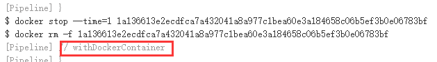 withDockerContainer 声明该管道在 Docker 内执行,会启动容器并把当前工作目录挂载映射到 Docker 容器内,在 Docker 容器内操作不会污染到宿主机,如为了加速可以在容器内安装 cnpm 而不影响到宿主机。该管道执行后,容器会自动停止