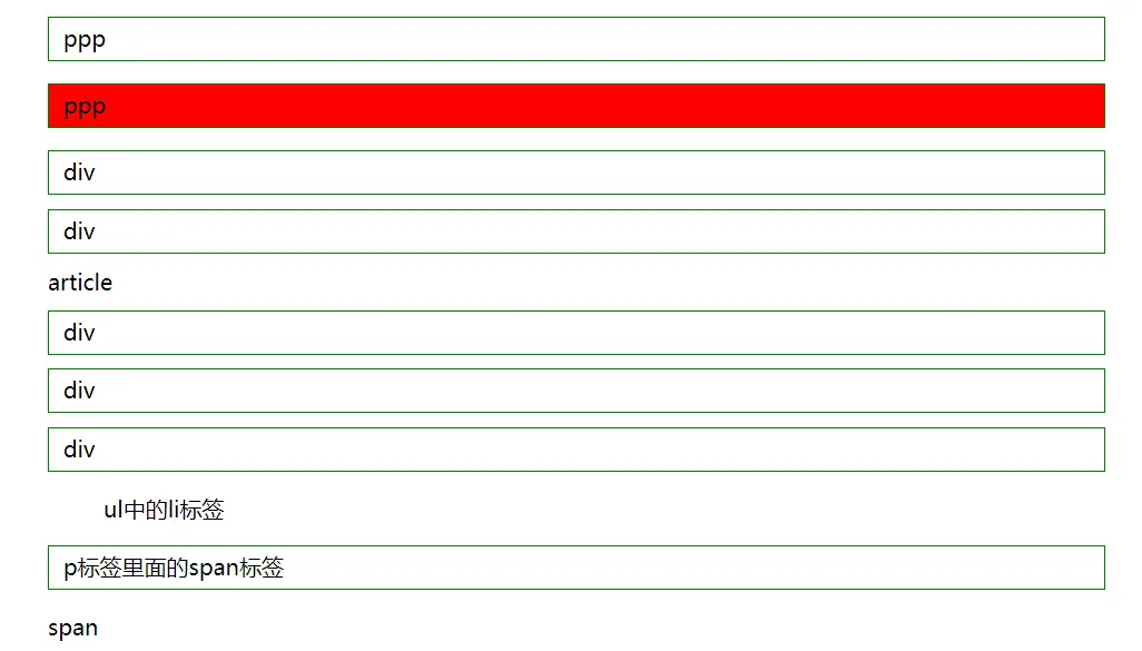 .box div:nth-of-type(2)的意思是选中.box后代中相同元素的第二个,所以p标签的第二个,div标签的第二个,li标签的第二个,span标签的第二个均被选中。