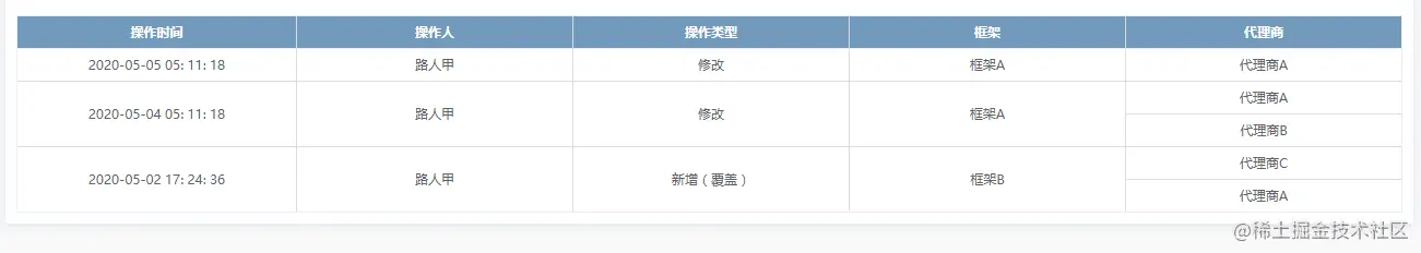 合并原理,相邻n行合相同元素并为一,则第一行列长*n其他的不显示即可,Element 提供了 span-method 用于合并行或列