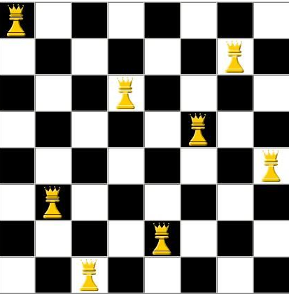 - 限制条件:任意两个皇后都不能处于同一行、同一列或同一斜线上