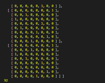 跑一下,可知 8 皇后问题一共有 92 种摆法