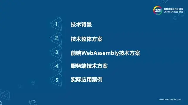 本次内容分为五个部分:一是美摄云非编方案的技术背景,也就是目前web端视音频编辑的现状以及我们采用新方案的原因;二是美摄云非编的技术整体方案,包括前端、后端及整体技术框架;三是美摄云非编方案的缓存机制,也是美摄云非编实时性的一个重要的保障;四是美摄云非编的整体工作流程;五是一些技术展望和本次问题的讨论实践。