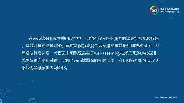 美摄云非编系统是基于WebAssembly技术实现了web端图像的实时渲染,利用缓存机制实现了大部分视音频编辑去网络化。