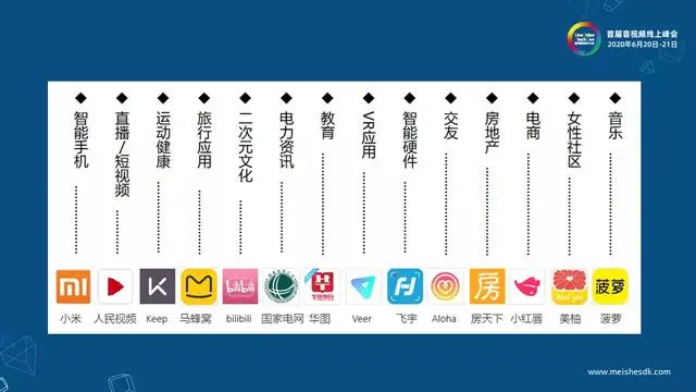 图中是美摄在各个领域的合作伙伴,就不一一列举了。目前,美摄的云非编方案已经在Bilibili的web端应用并上线。