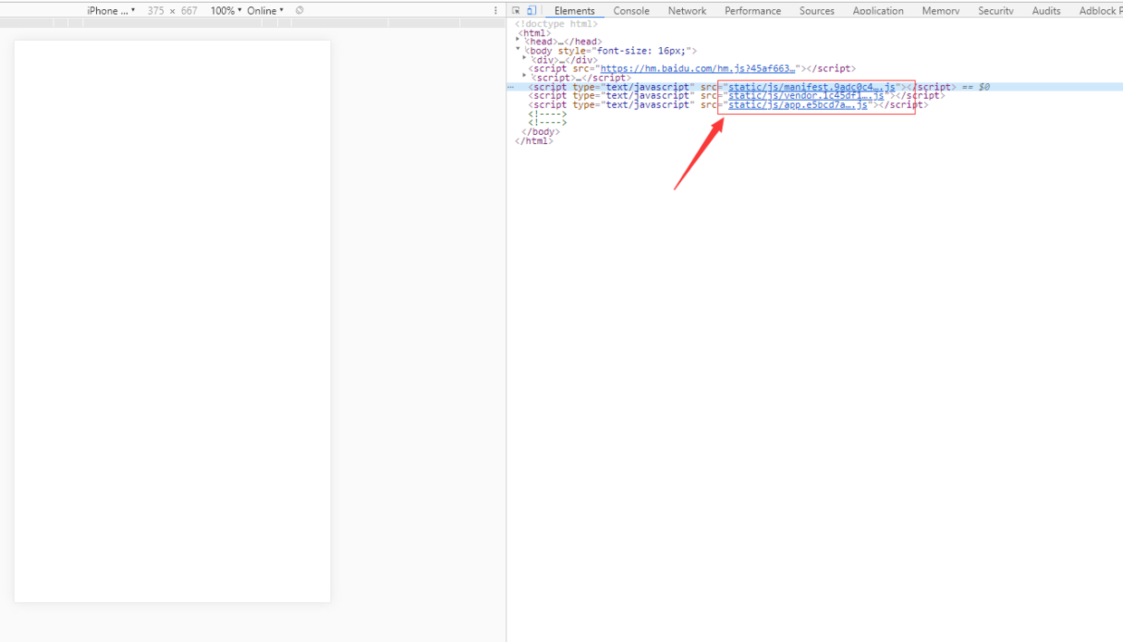 F12 看一下,发现这里的资源路径是有问题的,因为 static/js/xxx 代表的是根路径下,而我们打开是在项目目录下找不到资源,自然就白屏了。