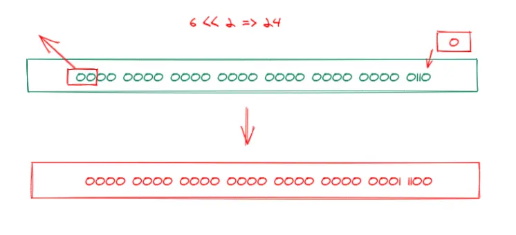 向左边移动,高位会被删除,而低位会补0。一张图,相信大家都能看得懂吧。