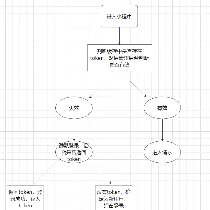 先判断缓存中是否存在token,再请求接口判断token是否有效,如果是否老用户直接实现静默登录拿到token存到缓存中,如果是新用户再走新用户登录的流程
