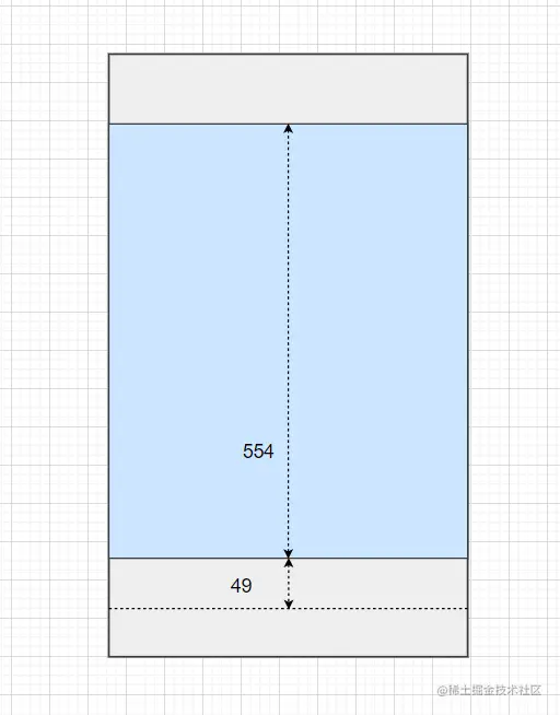 - 图中安全区高度554 为啥不是603,是因为微信ios版本在有历史访问记录的情况下会新增一个白底导航条,导航条高度49px 导致页面的安全高度区域减少了49px,而且只要微信做了公众号授权登录是一定会有这个导航条的,所以这个空间必须要算进去。