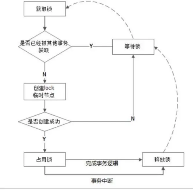 在java中,可以利用zk提供的api实现分布式锁,具体流程为: