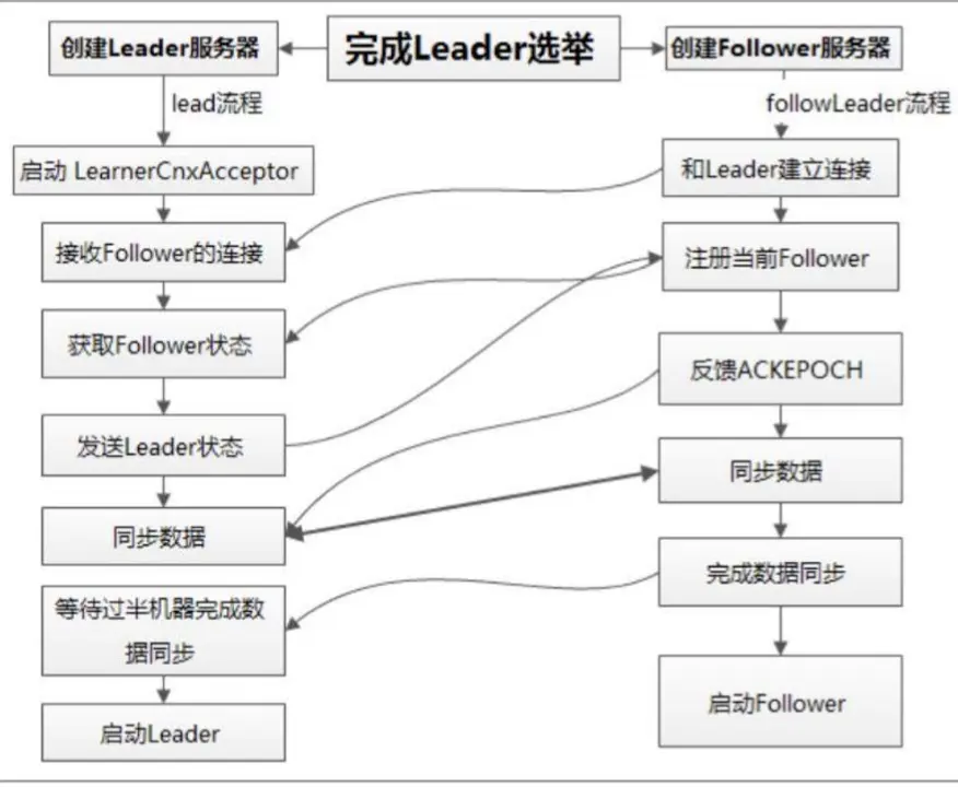 - 改变服务器状态:Leader->LEADING, Follower->FOLLOWING