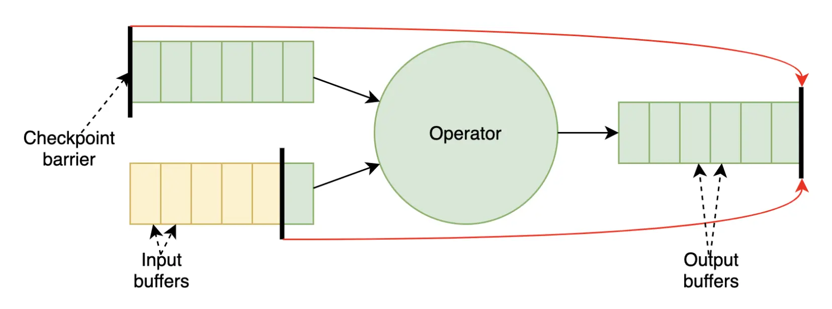 **注意:**开启这一特征需要通过 Chekpoint 选项配置 enableUnalignedCheckpoints 参数。需要注意的是,非对齐的 Checkpoint 只有在 CheckpointMode 被设置为 CheckpointMode.EXACTLY_ONCE 的时候才有效。