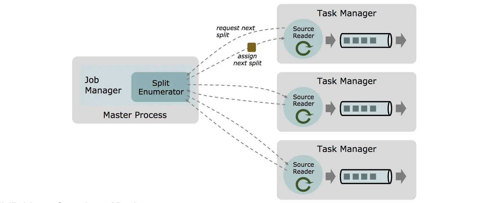 通过将分区发现和实现消费每一个分区的数据分成不同的组件(即 SplitEnumerator 和 SourceReader),新的 Source 接口允许将不同的分区发现策略和分区消费的具体实现任意组合。