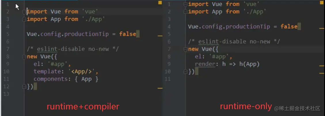 - runtime-only只能识别render函数,不能识别template。之所以可以在.Vue文件中写template是因为.Vue文件中的template先被vue-template-compiler翻译成了render函数。