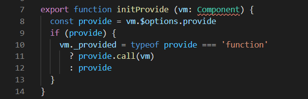 可以看到 initProvide 中基本没有什么内容,就是将 $options 里的provide赋值到当前实例上。