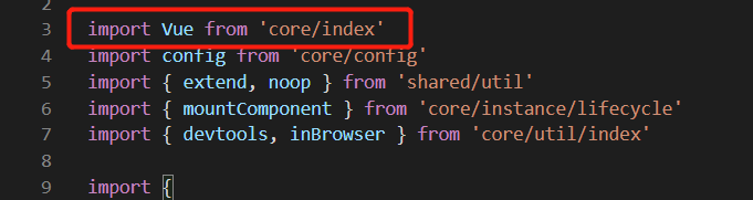 这个文件中并没有真正的Vue构造函数,可以看到这里在引入Vue。