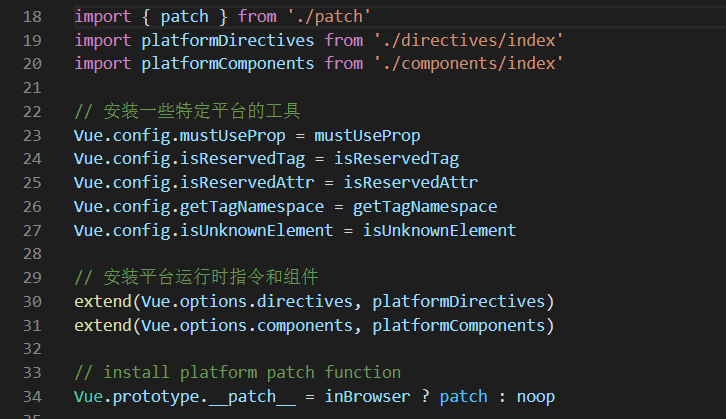 可以发现,这里配置并挂载了一些特定平台的工具,然后扩展了一些平台运行时指令和组件