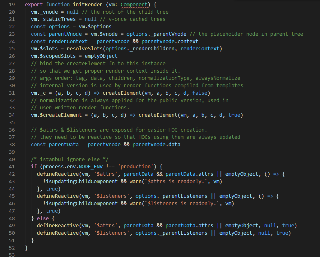 在 initRender 方法中,为Vue的实例添加了几个属性值,最后定义了 $attrs 和 $listeners的监听方法。