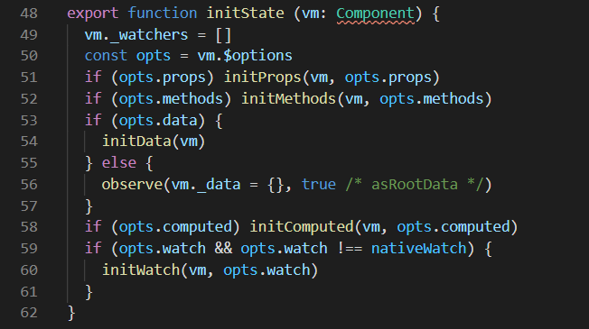 可以看到这里做了很多关键信息的初始化:props、methods、data、computed、watch