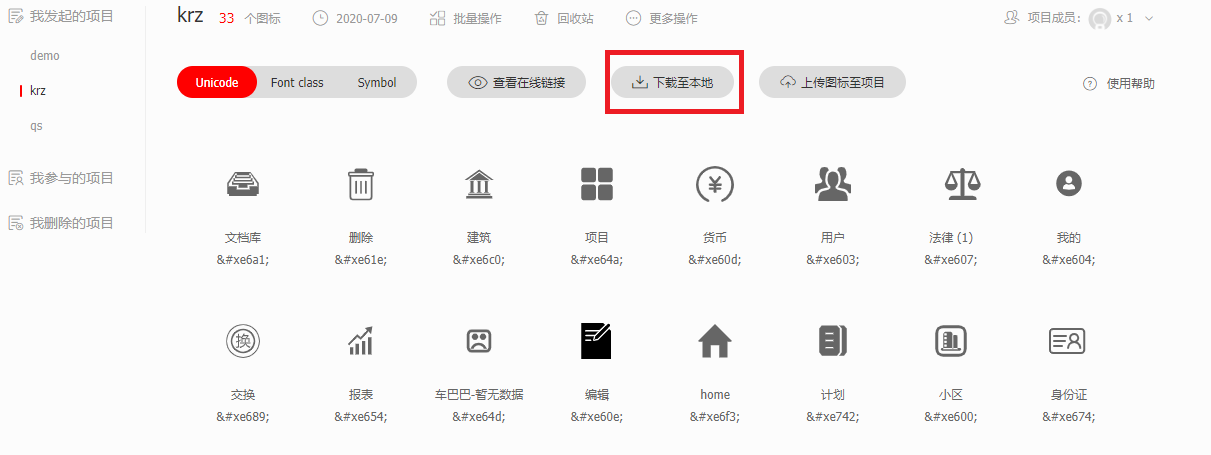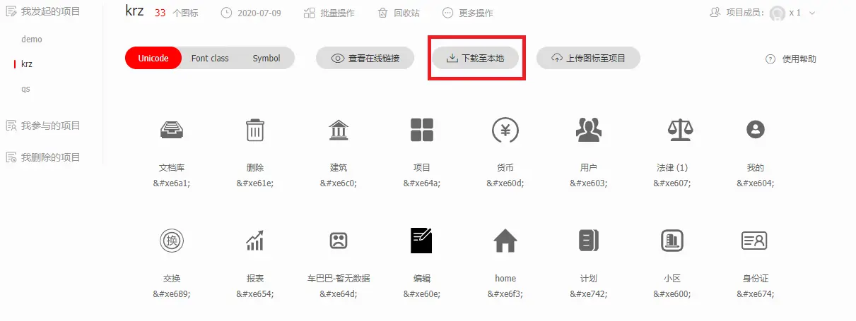 登录到https://www.iconfont.cn,搜索自己需要的图标加入购物车,然后添加到项目中,也可以新建一个项目。按照项目来管理自己的图标有利于日后图标的维护。
