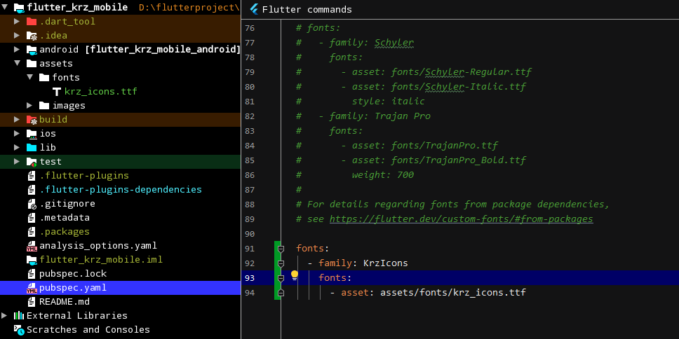 - _kFontFam 要和上面截图里pubspec.yaml中的family名称一致。