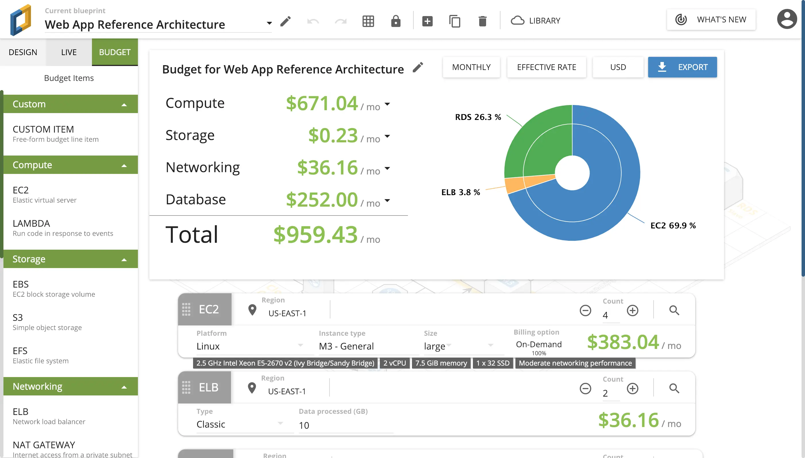 CloudCraft提供云服务价格的统计功能,帮你精打细算
